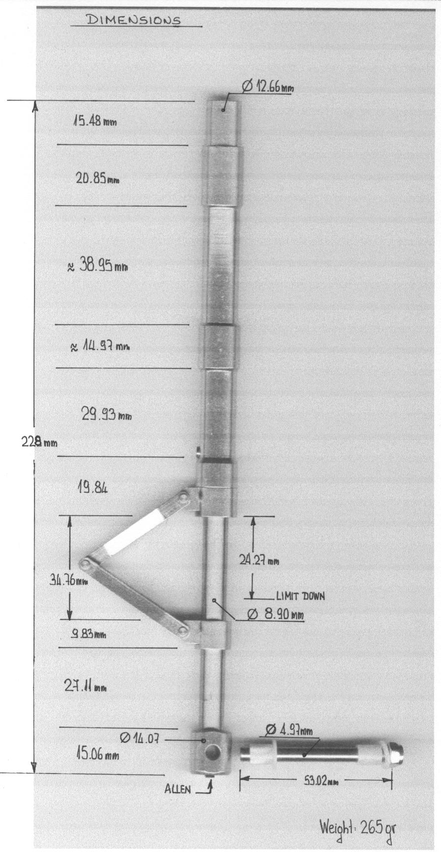 Straight Oleo Leg total length 228mm (to axle centreline 220mm),high quality for warbirds and scale models,with axle (length 53mm,diam 4.94mm) and wheel spacers.